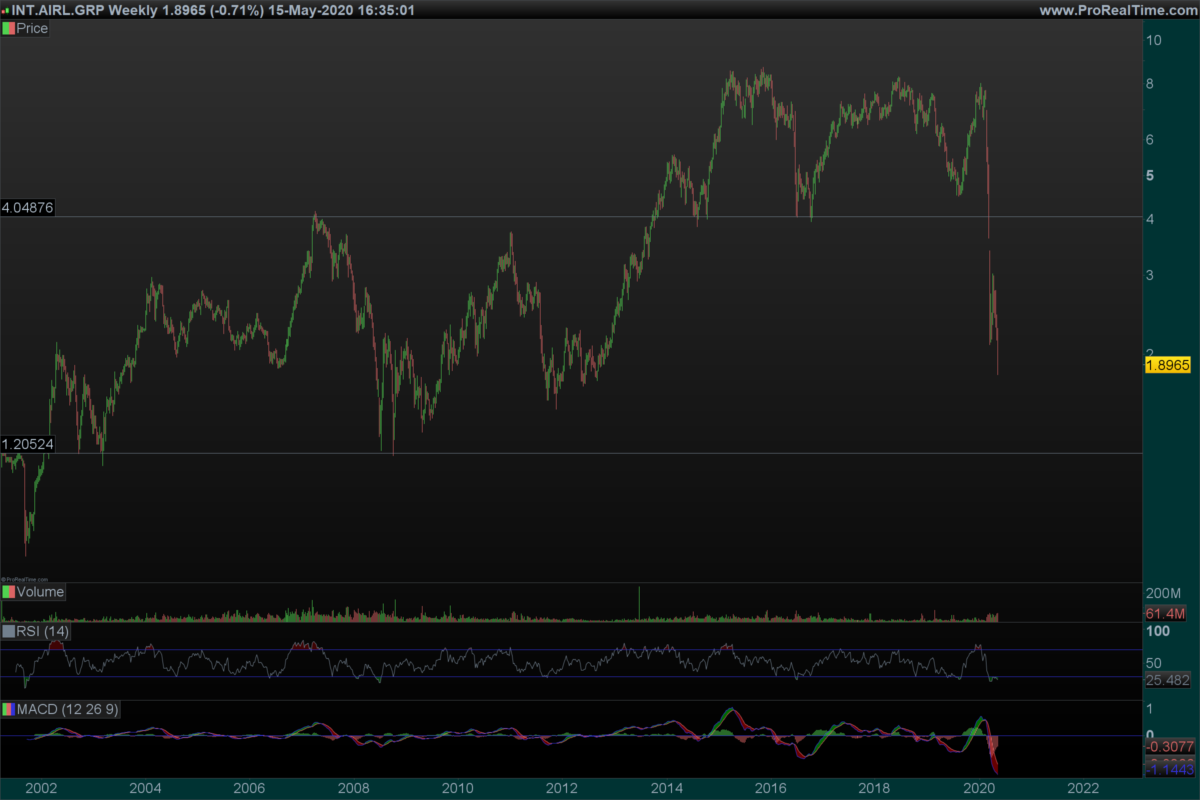Por fim podemos ver que na gráfico da IAG que estava a atacar máximos com uma excelente performance no sector, que a crise veio para ficar por algum tempo na aviação.