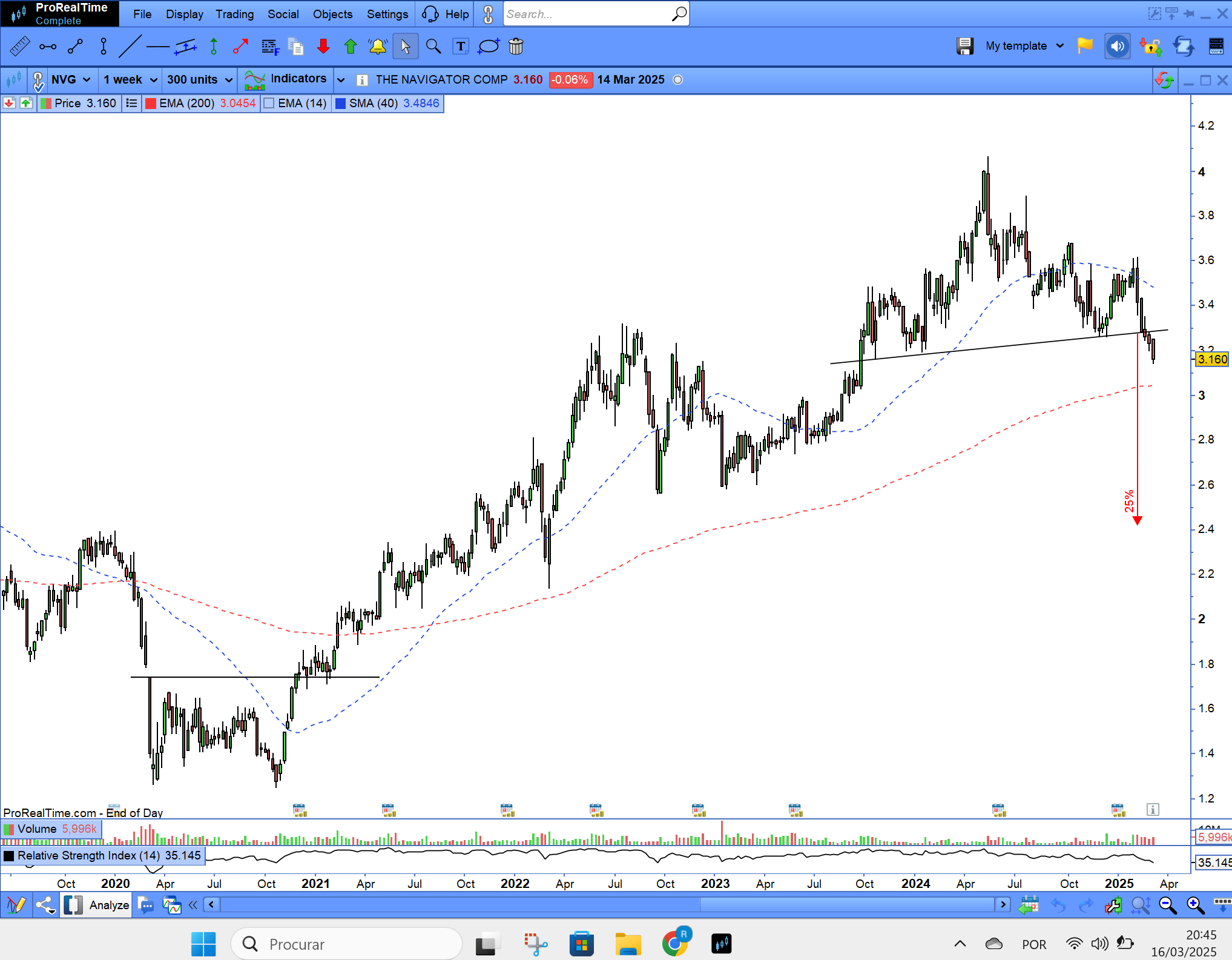 Já ando a ver essa possibilidade de correção há algum tempo, mais concretamente os 2,60 pela sua relevância passada. Só se a guerra de tarifas azedar muito ou o primeiro trimestre da Navigator for muito mau por algum motivo desconhecido …. São 15% de queda, pelas tarifas duvido, só por resultados.