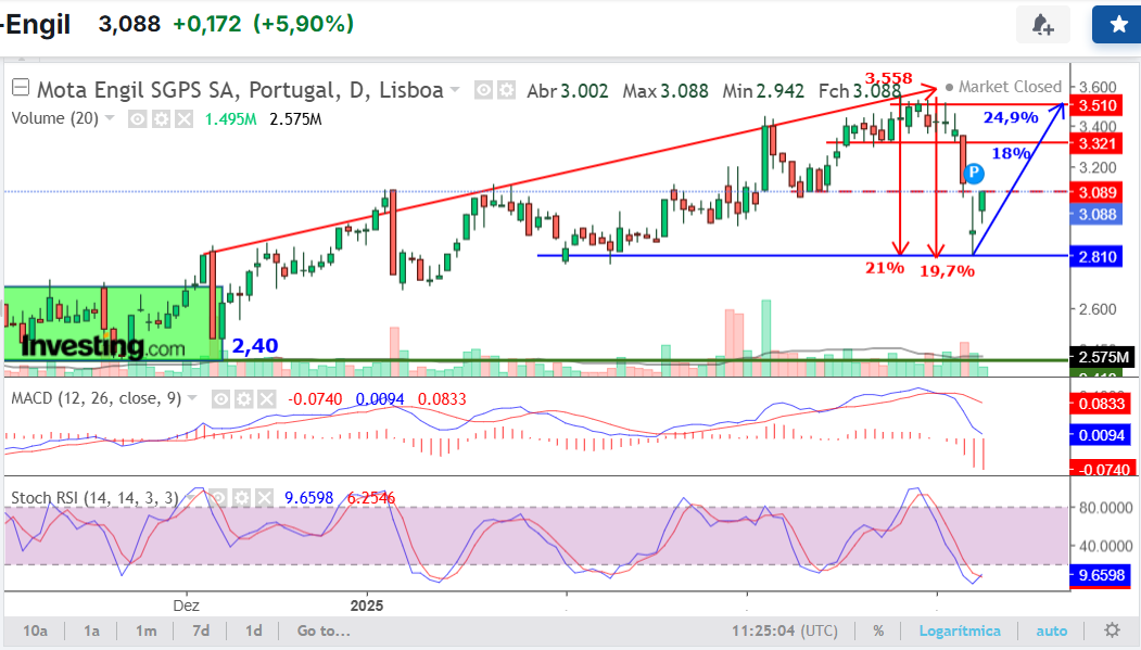 A ideia agora é voltar a entrar, mas só se os preços recuarem para a zona entre os 2,50€ e os 2,40€. Se lá chegarem, estarei pronto. Caso contrário, paciência — o mercado não se força, lê-se.
