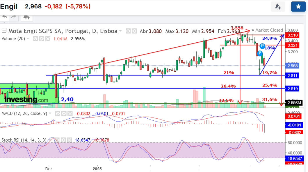 A ideia agora é voltar a entrar, mas só se os preços recuarem para a zona entre os 2,50€ e os 2,40€. Se lá chegarem, estarei pronto. Caso contrário, paciência — o mercado não se força, lê-se.