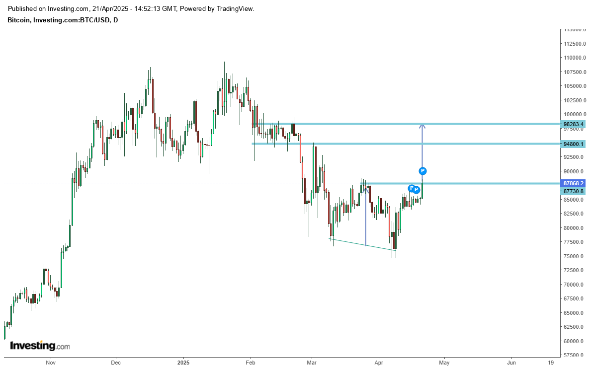 Há um disparo nas criptos, o BTC volta a 90K, valor que não alcançava desde o início de Março.
