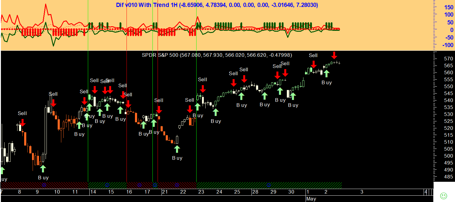 No meio desta molhada de experimentações há sempre algumas e novas ideias que acabam por resultar bastante bem no trading e daí trazer ao vosso conhecimento este recente indicador, que ainda está em fase de testes mas cujos resultados práticos dos sinais disparados recentes são deveras encorajadores, como podem observar abaixo nos dois exemplos abaixo apresentados no caso dos gráficos diários do S&P 500 e do BCP.