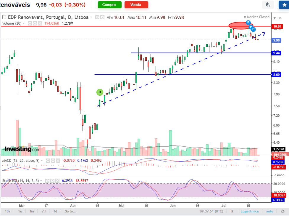 A EDP Renováveis apresentou os resultados semestrais esta semana, com os lucros a caírem 56% para os 93 milhões de euros. As ações da empresa terminaram a sessão desta quinta-feira nos 10,30 euros.
