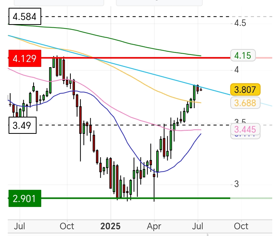 Está dificil o ataque aos €4 (quizás resistencia mais psicologica que real) :?