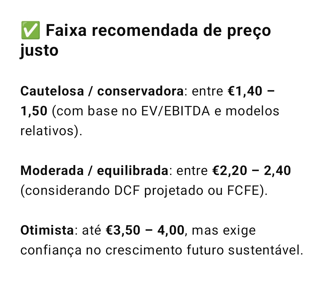 Agora oferecerem 2,057€ por ação não lembra ao diabo, quando a Visabeira pagou 1,60€ e estão avaliadas no mercado por 2,70€.