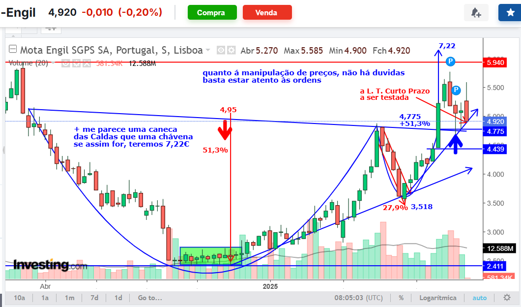 Boa perspetiva como habitual, Vale. Até aos 4,30 a LTA continua a fazer-se valer. A Mota é para barba rija, já se sabe, mas acompanhando-a com algum pormenor há quase 30 anos posso dizer que não me lembro de um período temporal tão volátil (micro, dias com mais de 5% para cima ou para baixo sucessivos) como este último ano… quem faça swing trading deve ver-se aflito.