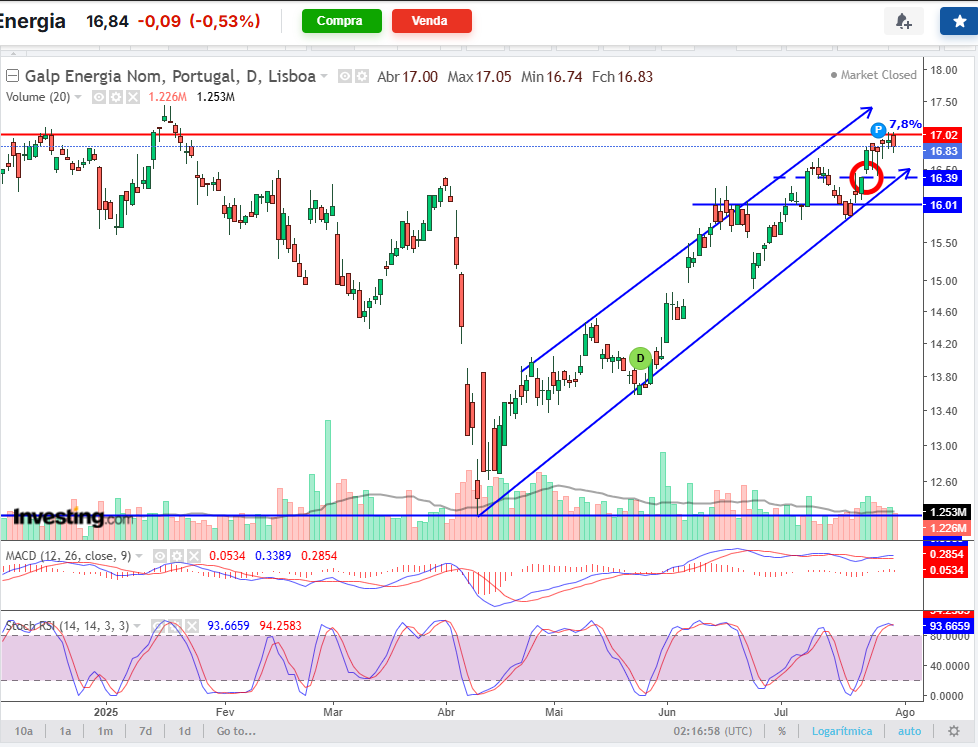 A GALP após um lucro trimestre digno de nota, vai pagar um bom dividendo já este Agosto. Aguardamos com muita expectativa qual vai ser o seu parceiro na Namibia. Produção própria de petróleo, de destilados, de energia renovável, projetos solares em andamento. Após este acordo comercial com os EUA/UE tem tudo para vir a cotação para o nivel dos seus pares a nível mundial.