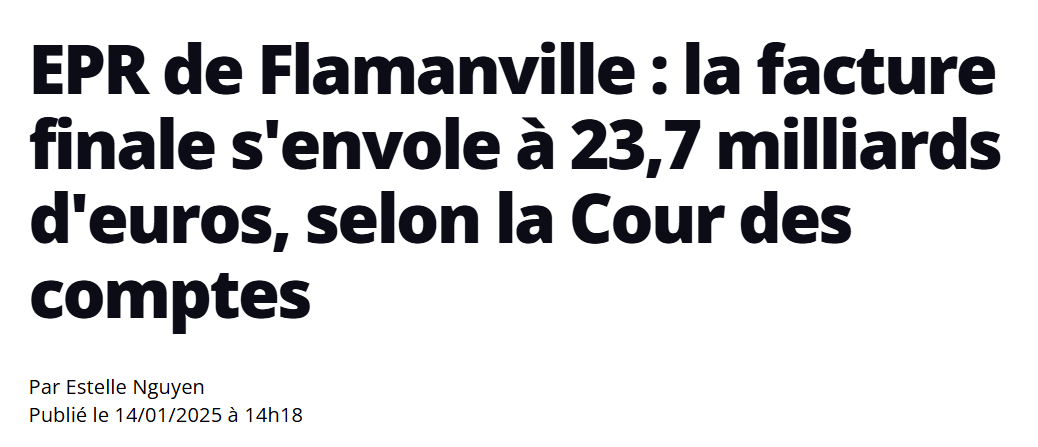 NirSup Escreveu:Opcard Escreveu:EPR de Flamanville, iniciado em 2007, tinha custo previsto de €3,3 mil milhões; hjá ultrapassa €13 mil milhões e ainda não entrou em operação