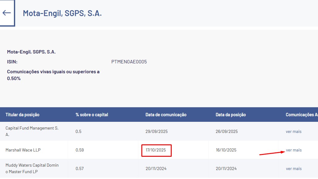 a 08-10-2025 a posição era 0,59% https://caldeiraodebolsa.jornaldenegoci ... 4#p1930224, tal como a que está comunicada à data de hoje.