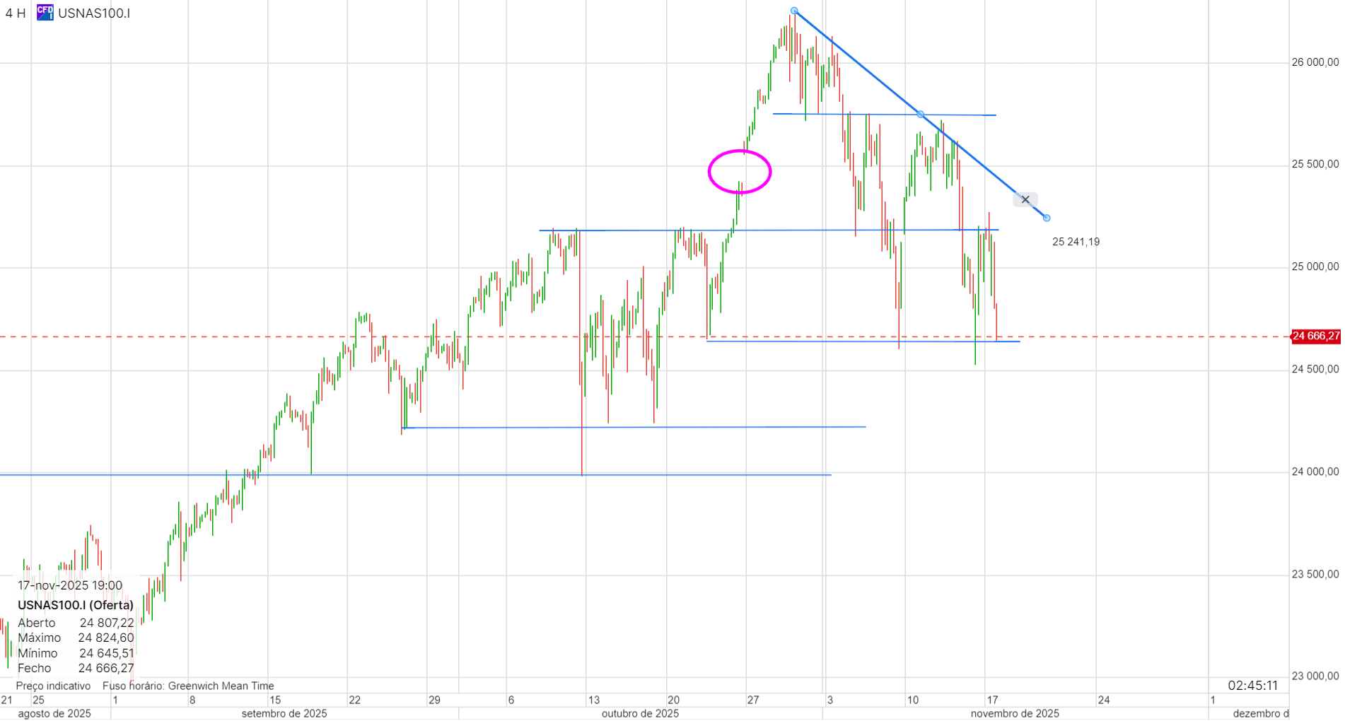 Eu pessoalmente acho que sim, e o índice lá vai fazendo a sua trajetória descendente. A esta hora, está novamente na zona dos 24600, é natural que haja uma reação a estes valores, mas não espero nada muito significativo. No entanto, ainda não quebrou essa zona e até isso acontecer...
