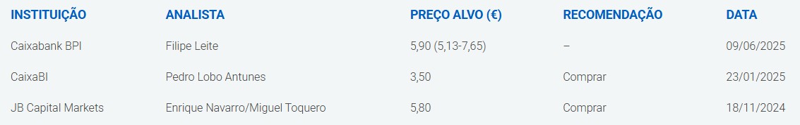 :arrow: JB Capital Markets, preço alvo de 7,10€, à data de 21/11/2025, nesta notícia