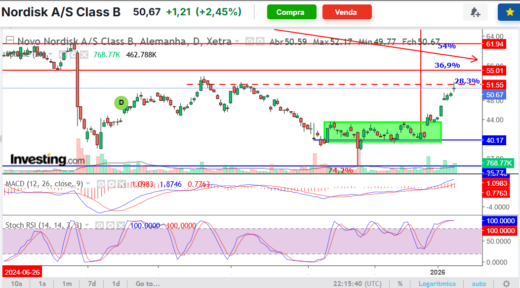 não tenho Novo Nordisk , mas parece-me que esta atrativa. Qual a bolsa que aconselham a comprar Dinamarca ou ADR americano ( utilizo a degiro )