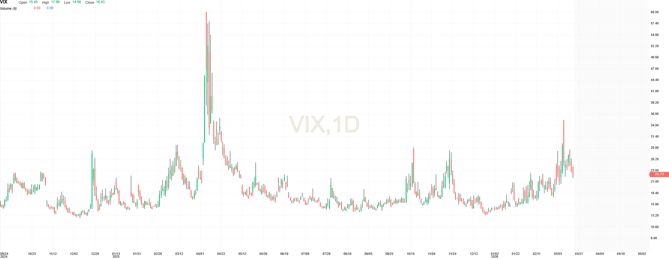 Curioso como o bluff das tarifas teve mais impacto na volatilidade do que uma guerra que tem efeitos reais na economia global.