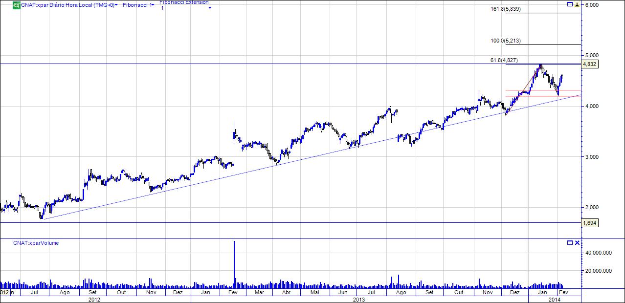 De facto este toque no dia 15-1-2014, levou a ação a ajustar cerca de 13%, chegando perto da ltd que vinha a definir o bull market.