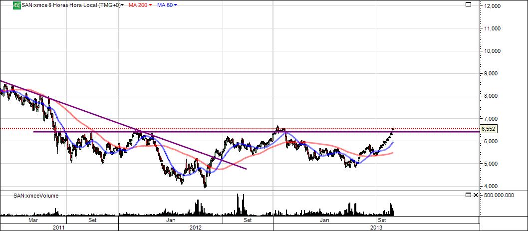 - Banco Santander, gráfico semanal de 20 de Agosto de 2012.