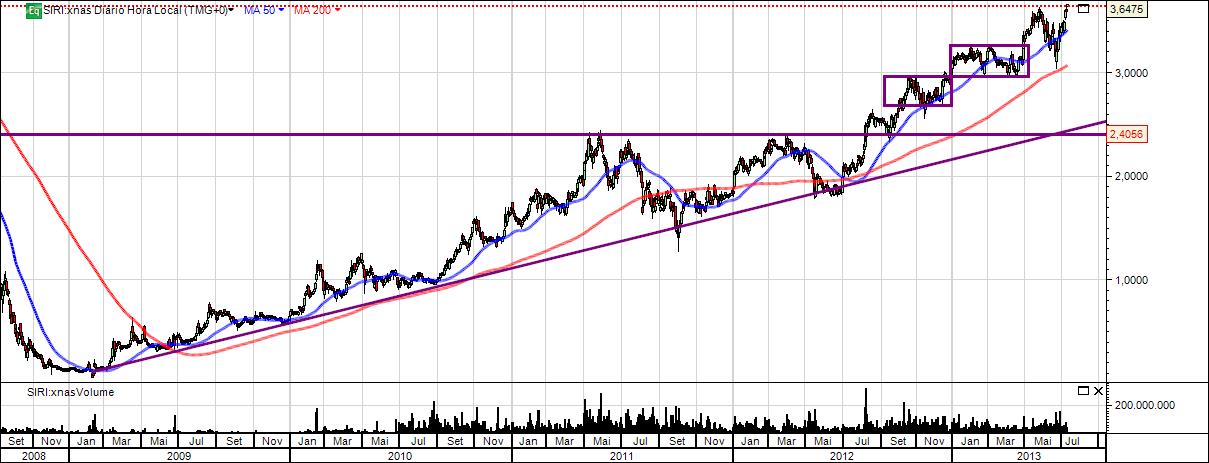 Sirius abaixo da MM200, a correcção em curso é já a maior desde a Primavera de 2012.